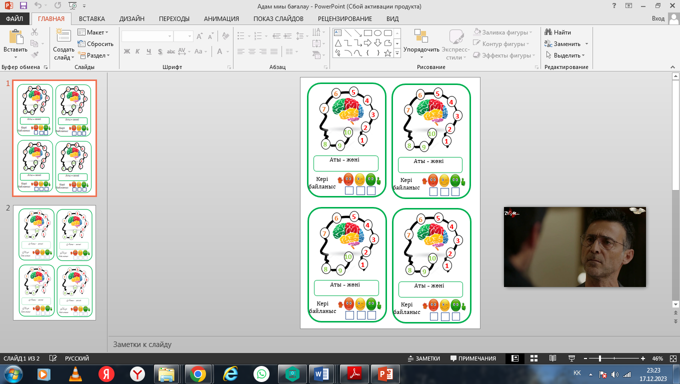Оқушыларға мидың суреті салынған қималар беріледі. Оқушылар бүгінгі сабақтан алған әсерін жазады