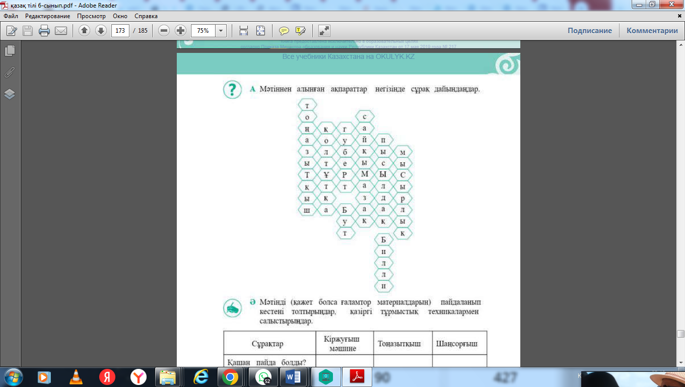 Мәтінді оқыңдар. Тақырыбы: «Тұрмыстық заттар тарихы» Оқушылар мәтінді түсініп оқиды.