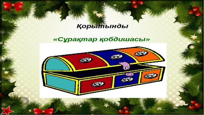Топтастыру: Оқушылар жеміс ағашынан өзіне ұнаған жемісін таңдап топқа бірігеді. Алма жемсін таңдағандар «Түстер» тобына, Алмұрт жемісін таңдағандар «Робот» тобына бірігеді. Миға шабуыл! (Ж) «Сұрақтар қобдишасы» әдісін қолдану арқылы сұраққа жауап беру. Ортаға нөмірлер жазылған қобдиша қойылады. Оқушылар кезектесіп қобдишадан бір нөмір алады да, интерактивті тақтадан сол нөмірдің сұрақтарына жауап береді.