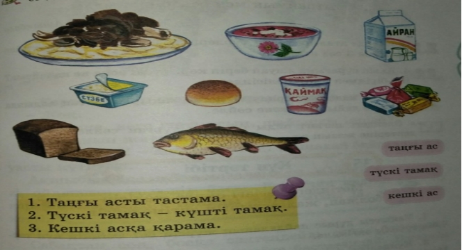 Дескриптор: Тағамдарды берілген нақыл сөздерге қарай топтастырады-1б Қай мезгілде қандай ас жеу керек екенін біледі-1б