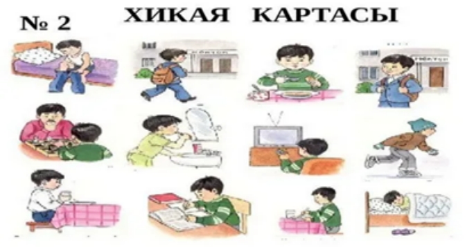 ЕҚБ «Хикая картасы» әдісі Дәптерге суреттегі баланың бір күндік хикаясын жаз.