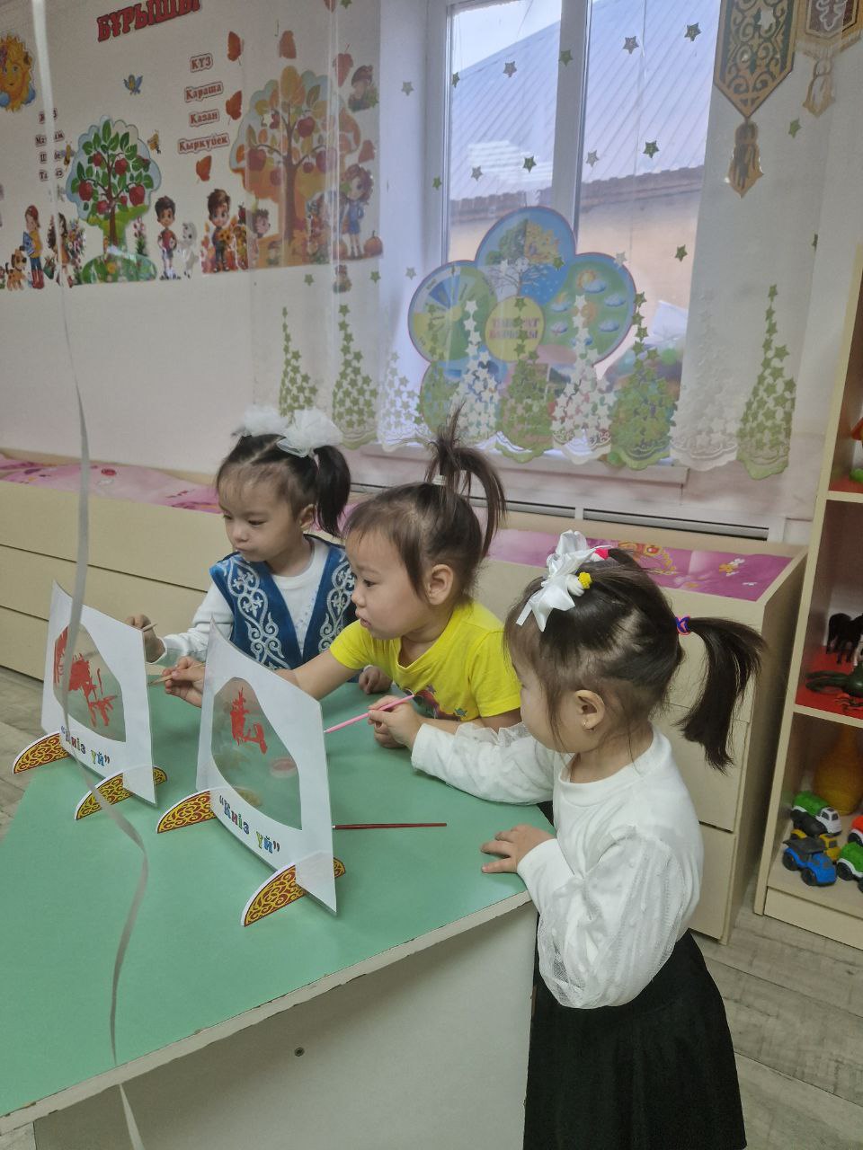 Шарты: Киіз үйді қызыл түске бояу керек (жапсыру)