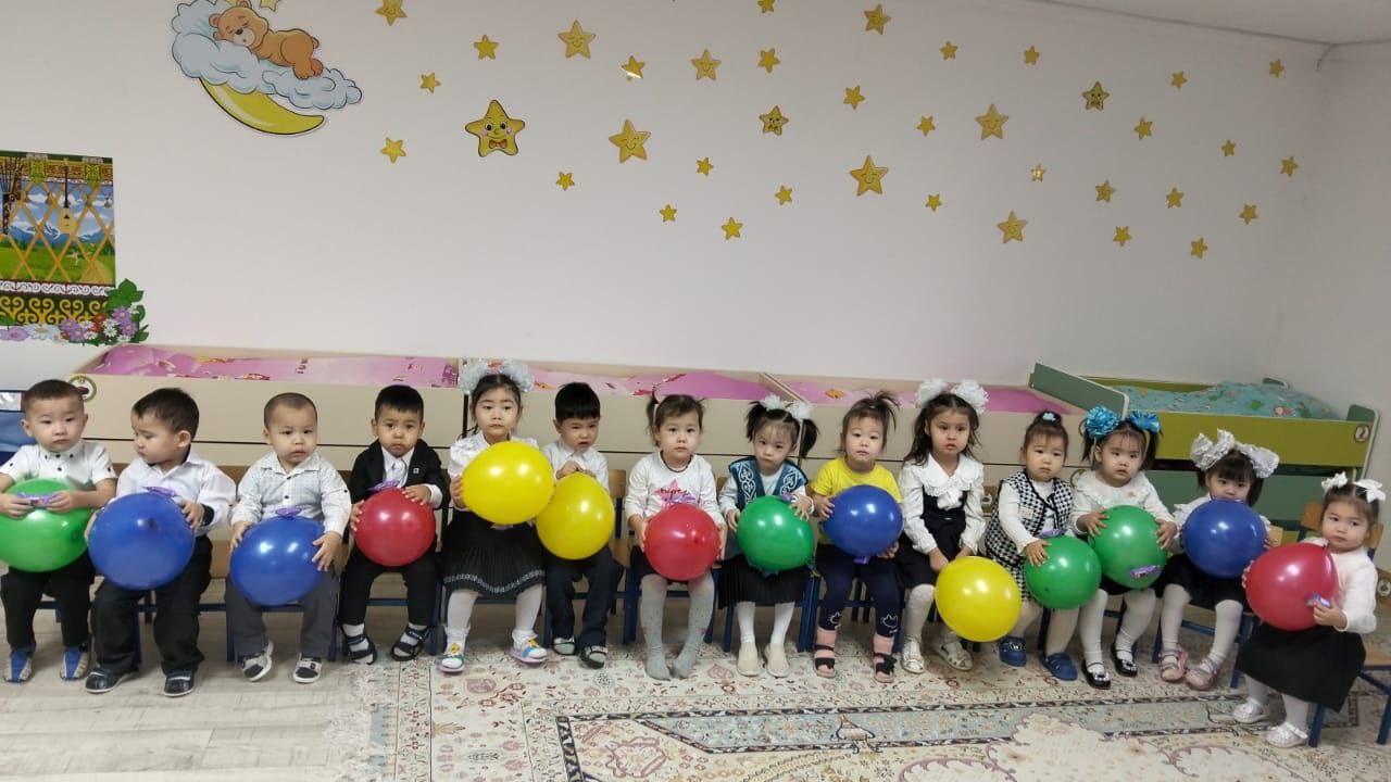 -Ия дұрыс айтасыздар балалар сендерге керемет шарлар алып келіпті ия қараңыздаршы түстері қандай?