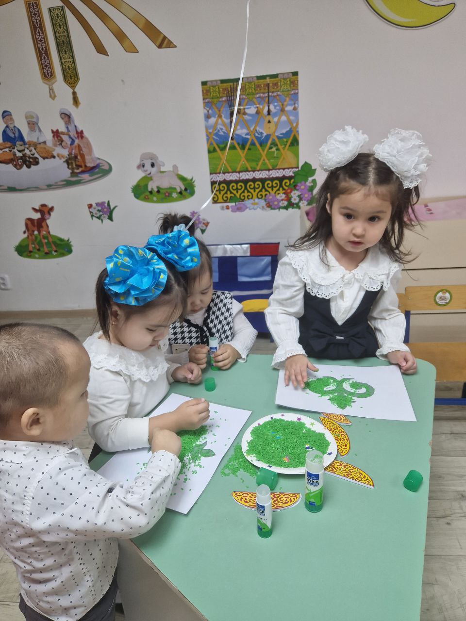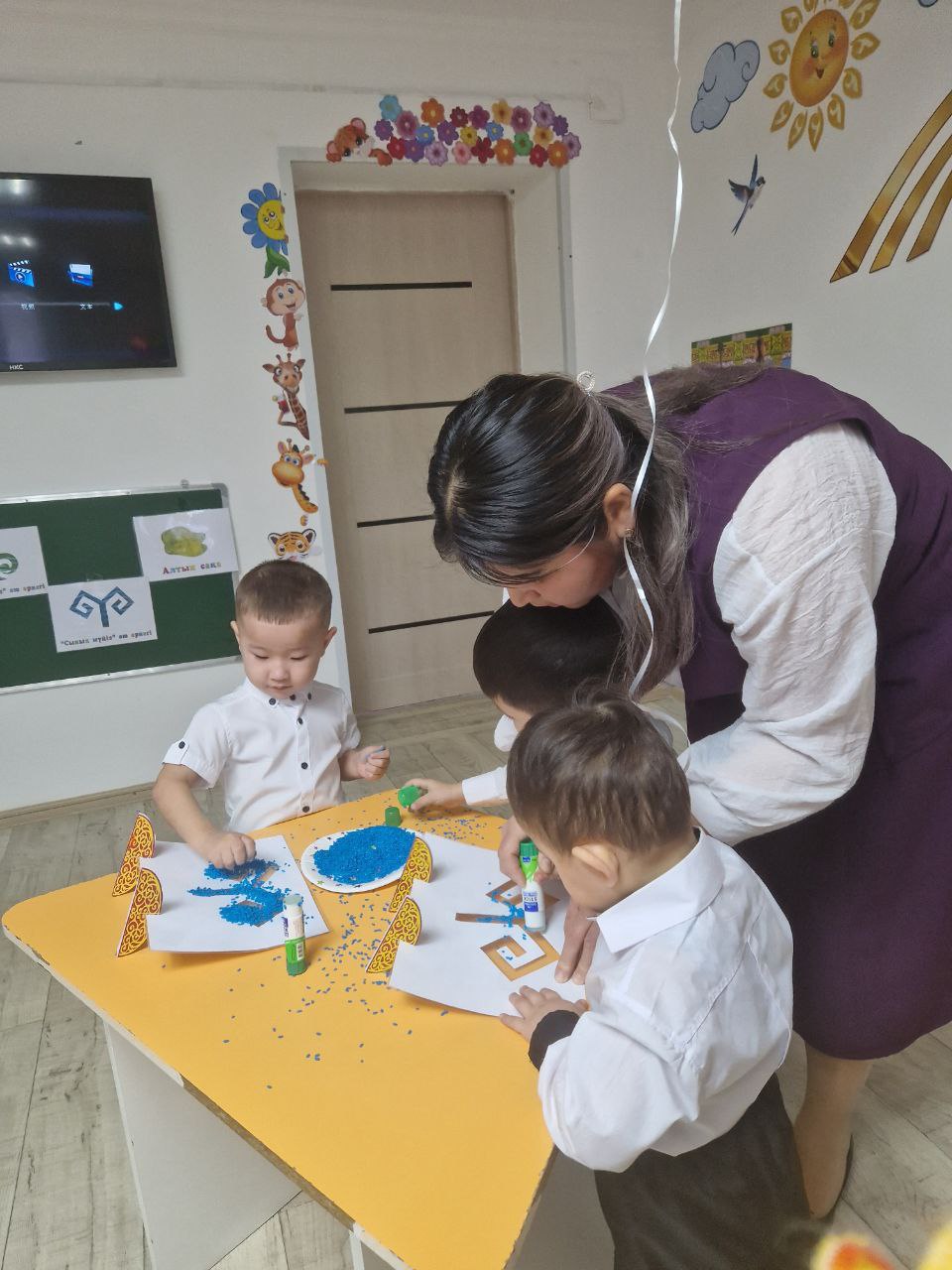 Тәрбиеші: Бүгінгі біздің тапсырмаларымыз Ұлттық құндылықтар негізінде болмақ. «Киіз үй», «Алтын сақа», «Қошқар мүйіз» және «Сынық мүйіз»