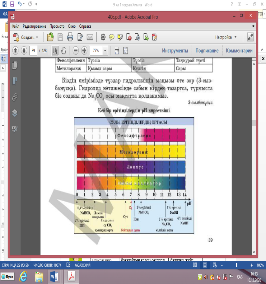 9.3.4.3-орта тұз ерітіндісінің ортасын тәжірибе жүзінде анықтау 9.3.4.4 -орта тұз гидролизінің теңдеуін молекулалық және иондық түрде құрастыру 9.3.4.5 -орта тұз ерітіндіcінің реакция ортасын болжау |