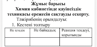 1. Дескриптор: Жалпы - 3 балл 1.Тәжірбиелерді жасайды. |