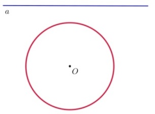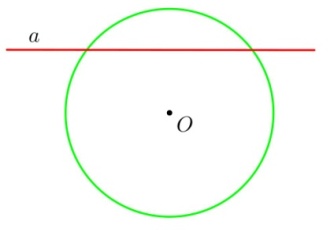 Есеп 1: Радиусы r шеңбердің центрінен түзуге дейінгі ара қашықтық d болсын. Егер: r=10 см, d=9 см болса, a түзуі мен шеңбер өзара қалай орналасқан?