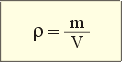 Мұнда: (рο) – заттың тығыздығы, m – заттың массасы, V-заттың көлемі. ХБЖ-де тығыздықтың өлшем бірлігі - 1 кг/м3 ; 1 м3 көлемдегі заттың массасы 1 кг болатын тығыздығы. Егер заттың тығыздығы мен көлемі белгілі болса, онда заттың массасын қалай анықтауға болады? Егер заттың тығыздығы мен массасы белгілі болса, ол кезде заттың көлемін қалай анықтауға болады? Белгілі бір массасы мен көлемі бар заттың тығыздықтарын есептеулер арқылы есептеп алынған мәндері бар. Біз заттың үш күйі болатынын білеміз. Олар: қатты, сұйық және газ. Осы заттың үш күйіне тән тығыздықтың мәндері кестеде берілген.