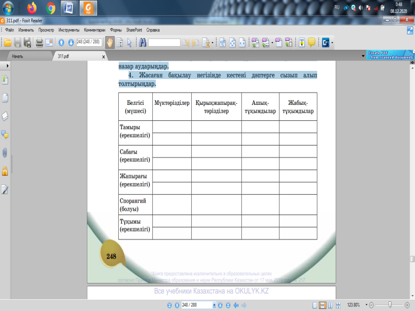 8.1.1.1 балдырлар, мүктер,қырықжапырақ тәріздестер, ашық және жабықтұқымдыар мысалында өсімдіктердің ерекшеліктерін сипаттау |