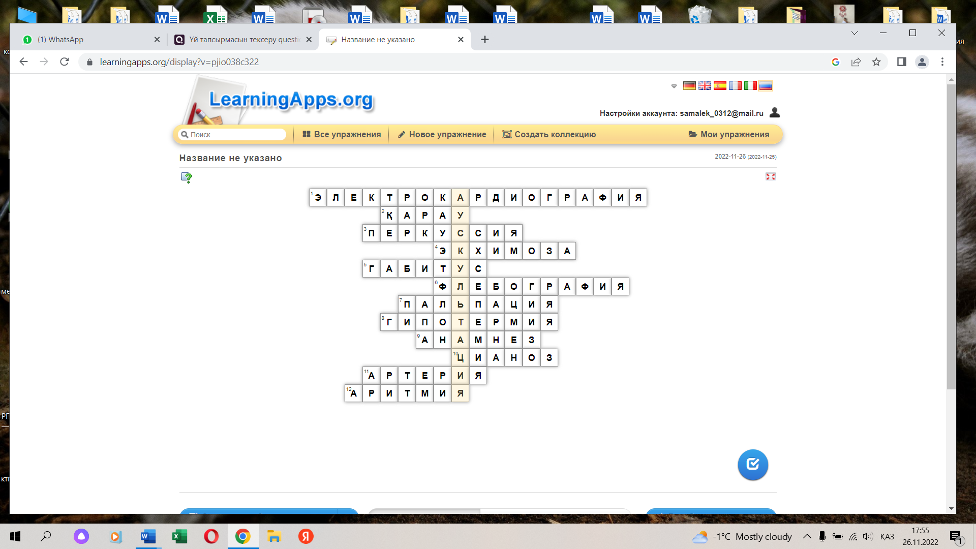 ә) LearningApps.org бағдарламасы бойынша сөзжұмбақ шешу арқылы білімді тексеру.