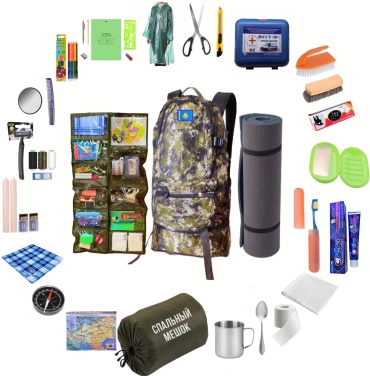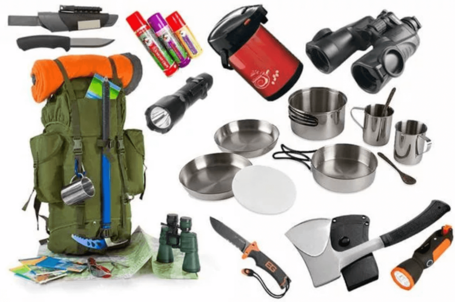 Топтық жабдықтар: тамақ, шатырлар, балта, ара, шелектер мен бақаншалар, шатырды жабатын пленка, ожау, сіріңке, компас, карта, GPS, дәрі-дәрмек қобдишасы және т.б.