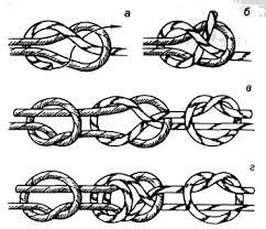 1. Бірдей диаметрлі арқандарды байлауға арналған түйіндер: «түзу», «тоқу», «қарсы», «жүзім».
