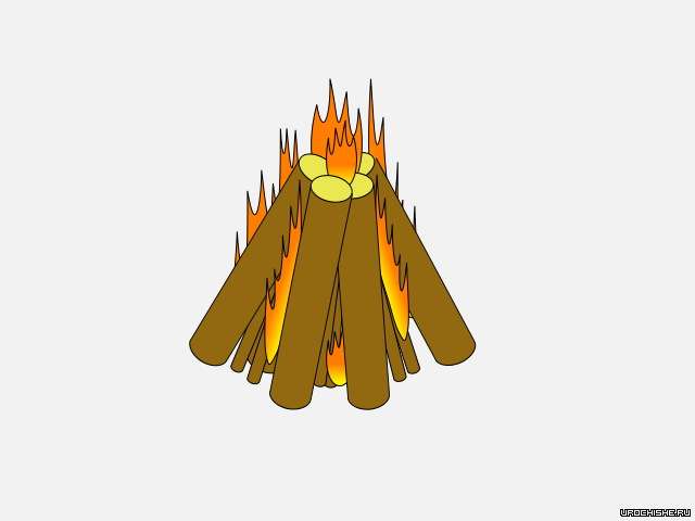 • Алау тез тұтану үшін тамыздықты төменнен тұтатып, ал жогарыдан біртіндеп қураған бұталар, жаңқа шырпылар салынады.