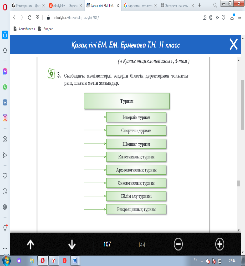 Сабақтың тақырыбы: Туризм саласы: өткені мен бүгіні қазақ тілі