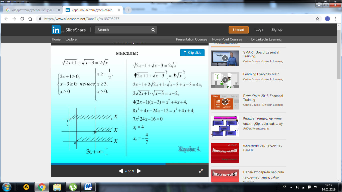 1.Иррационал теңдеуді шешіңдер: