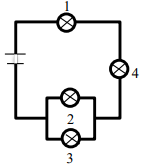 2. Электр тізбегінде төрт электр шамы қосылған (сурет). Бұлардың ішінде параллель қосылғаны: