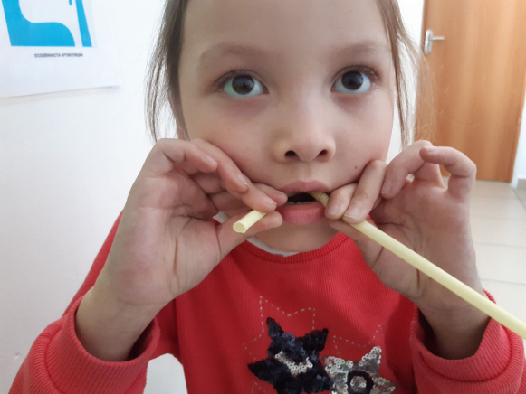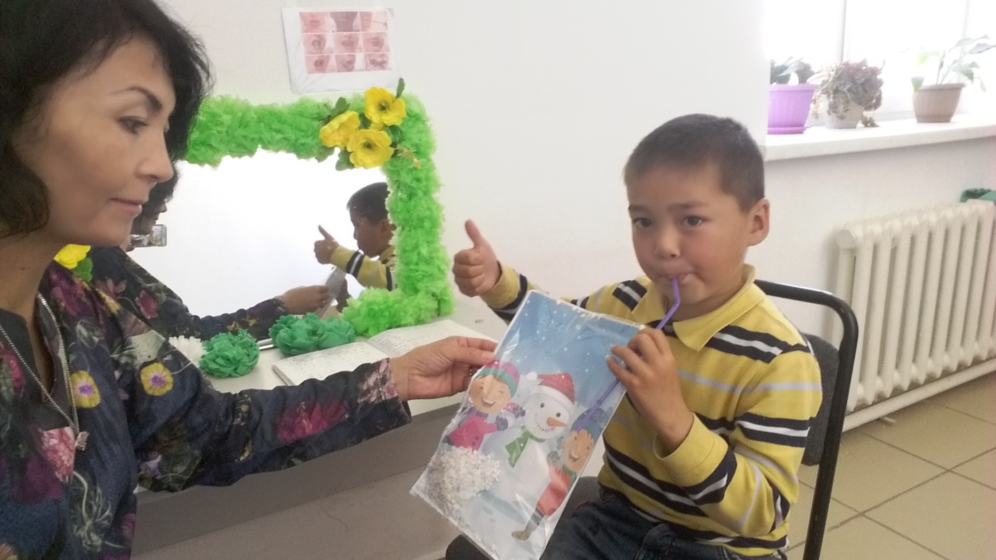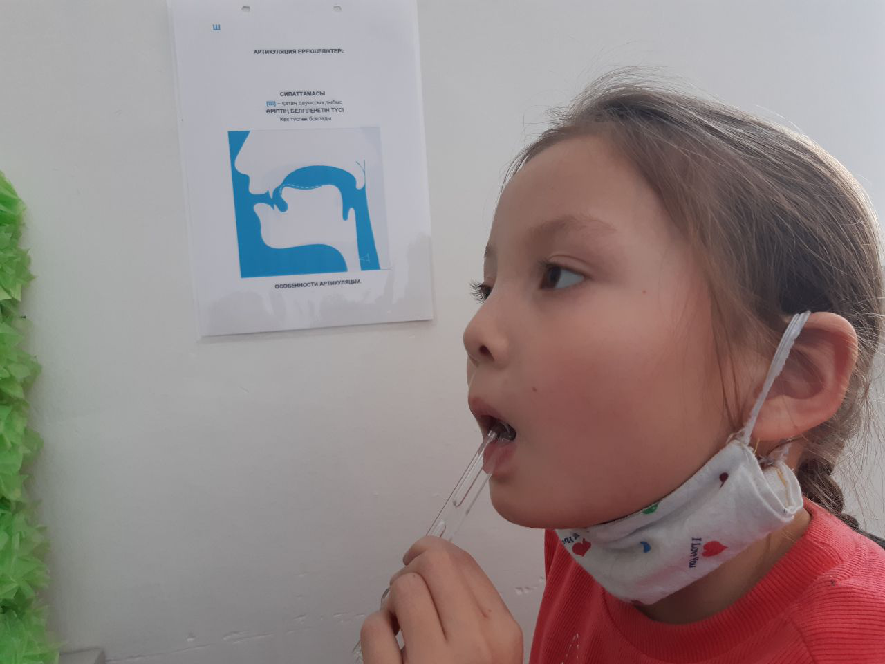Сусын ішетін трубочка арқылы тіл ұшының жоғары көтерілуі шектелген балаларға (л, р, ж, ш, ц, ч, д, т, т.б.).дыбыстарын қоюға ыңғайлы.Шпатель көмегімен тіл арты (ң,к,г,қ,ғ)дыбыстарын қойған ыңғайлы.