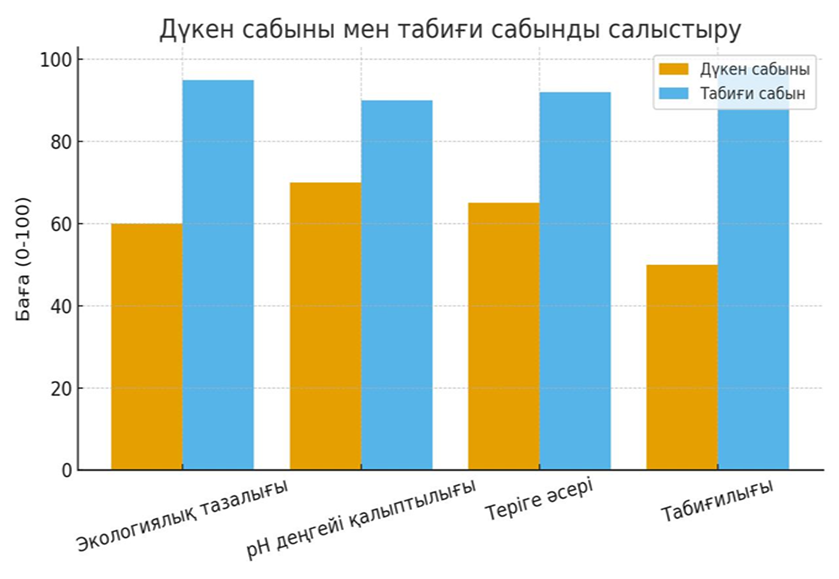 Экологиялық таза .Теріге жұмсақ әсер етеді . Жеке қалау бойынша иіс пен түс таңдауға болады. Табиғи сабын барлық критерий бойынша дүкен сабынына қарағанда жоғары бағаланды.