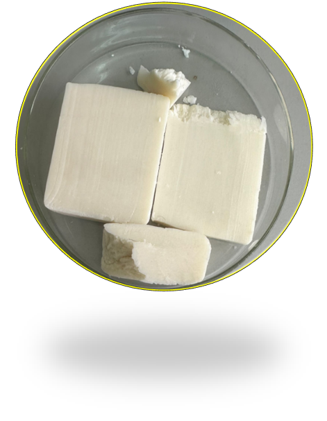 - Май жылы күйінде ыдысқа құйылады да, үстінен сілті ерітіндісі баяу құйылады.