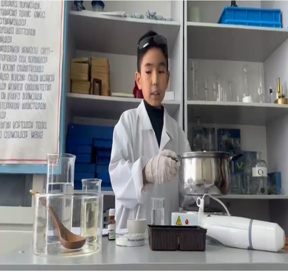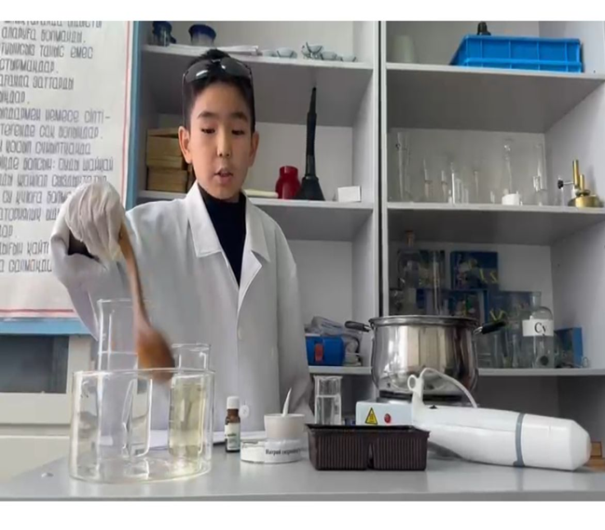 Семеновка орта мектебінің 6-сынып оқушысы Қабдрайх Алижанңың «Үй жағдайында сабын жасау» ғылыми жұмысына