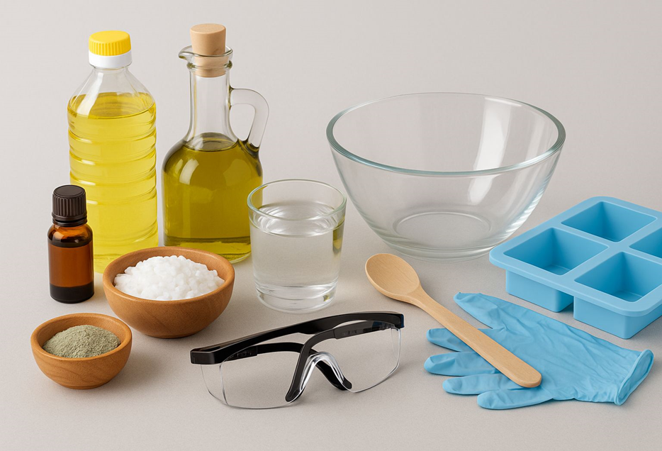 Сабын жасау үшін келесі материалдар қажет: өсімдік майлары (күнбағыс, зәйтүн, кокос майы), натрий гидроксиді (сілті), су, хош иісті эфир майлары және табиғи бояғыштар. Құрал-жабдықтарға – ыстыққа төзімді ыдыс, ағаш немесе пластик қасық, қалыптар (силикон немесе пластик), қорғаныс қолғаптар және көзілдіріктер кіреді. Құралдардың тазалығы мен қауіпсіздігі өте маңызды, себебі химиялық реакция кезінде күтпеген жағдайлар болуы мүмкін.