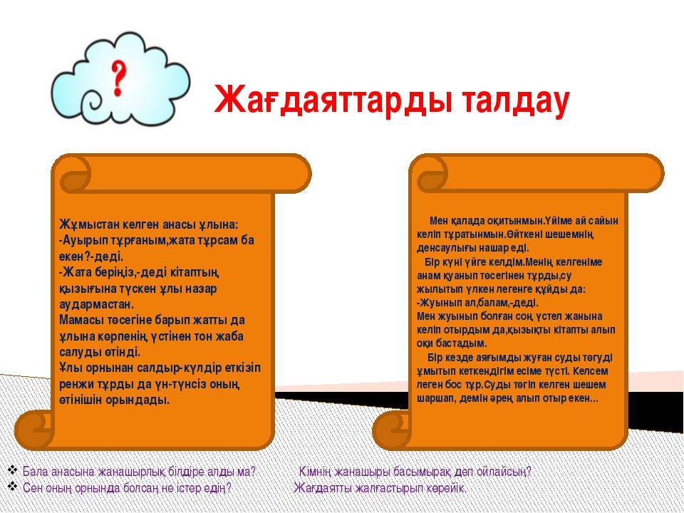 баулып, тәрбиелеуге мүмкіндігі мол. Оқулықтағы «Ойланайық,