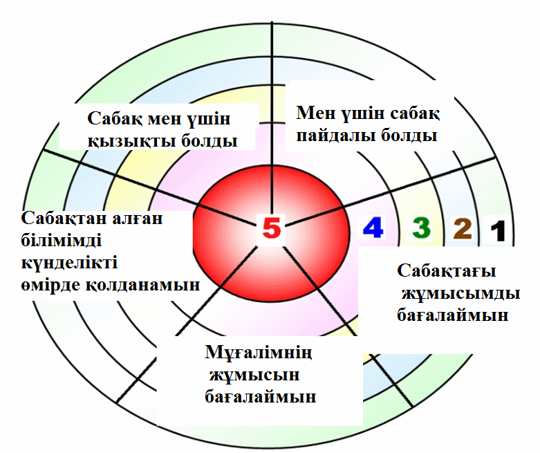 Оқушы нысанадан қажетті деңгейді белгілеу арқылы сабаққа кері байланыс береді.