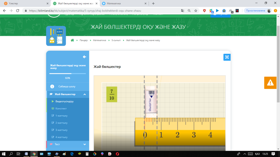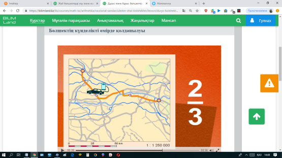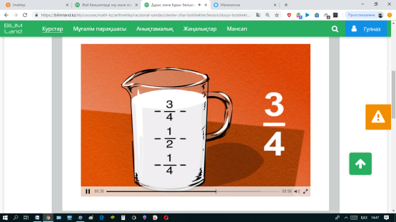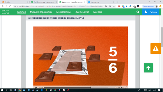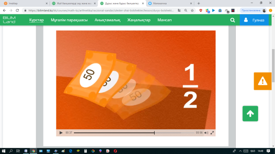 Сергіту сәті: Бөлшектің күнделікті өмірде қолданылуы видеотоптамасын көріп мысалдар келтіру