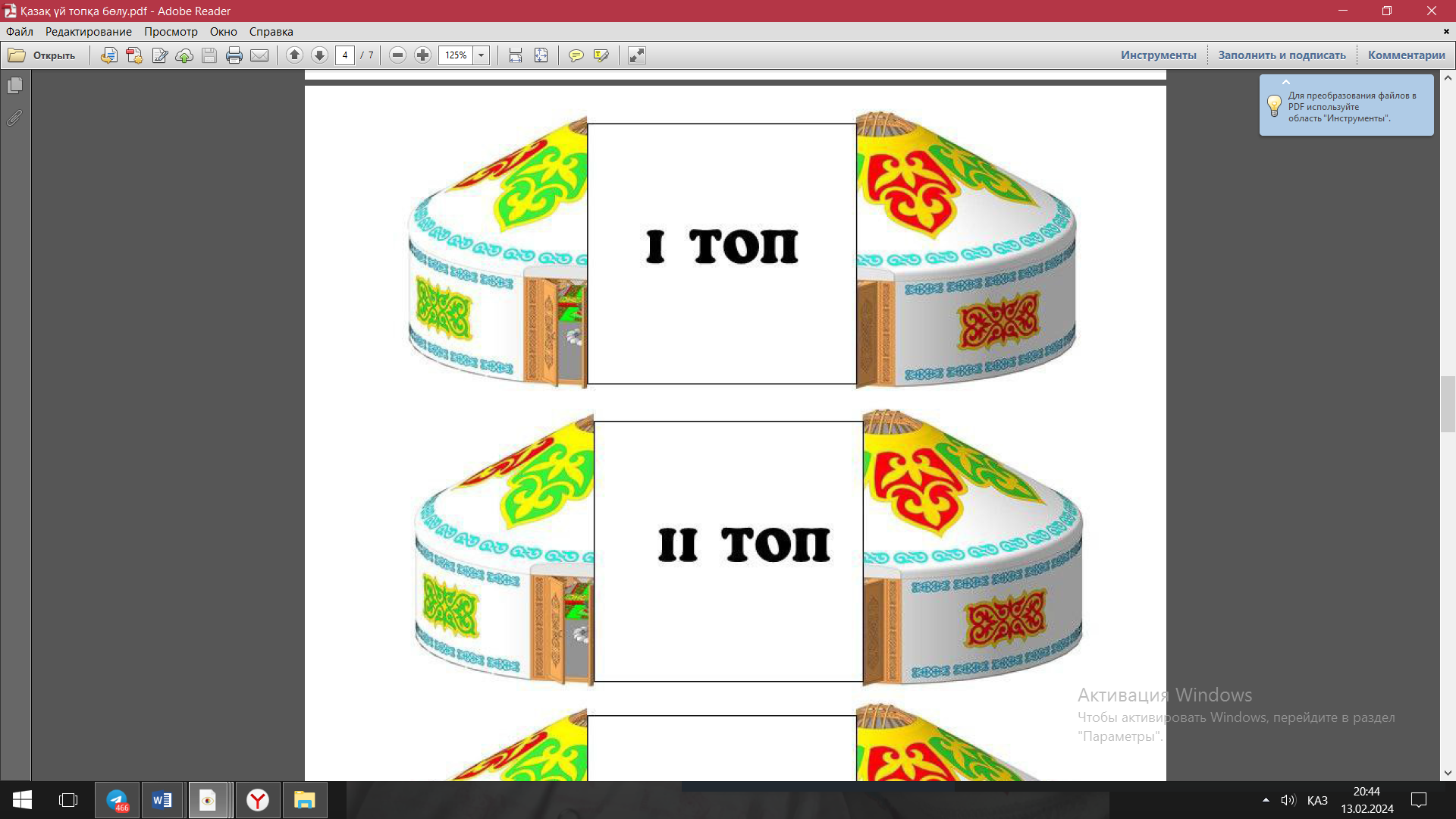 Оқушылар тақтаға шығып бір-бірден қазақ үйді алады да 2 топқа бөлінеді