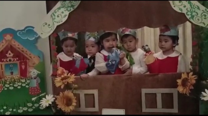 Балалар: Жеті лақ, үш аю, Маша мен аю, Бауырсақ, Шалқан, Үйшік ертегілерін білеміз.