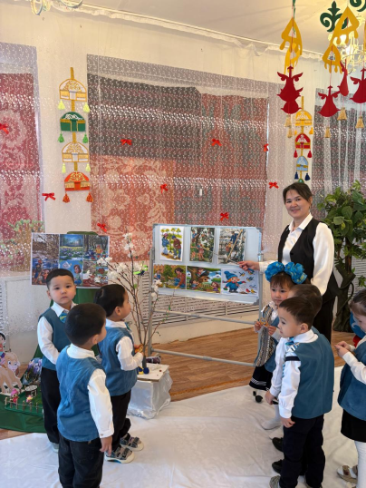 Тәрбиеші: – Көктем мезгілінде қандай табиғат құбылысы болады? Немен ерекшеленеді? -Көктемде күн жылына бастайды. Қар еріп жылғалардан су ағады. Жыл құстары өз мекендеріне ұшып келе бастайды. Келе сала ұя салып, балапан басып шығарады. Ағаш бұтақтары бүршік жарады. Құрт-құмырсқа, аралар оянады. Егіншілер егін егеді, көшет отырғызады.