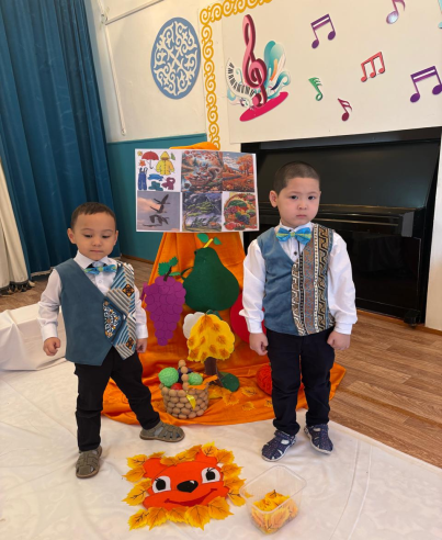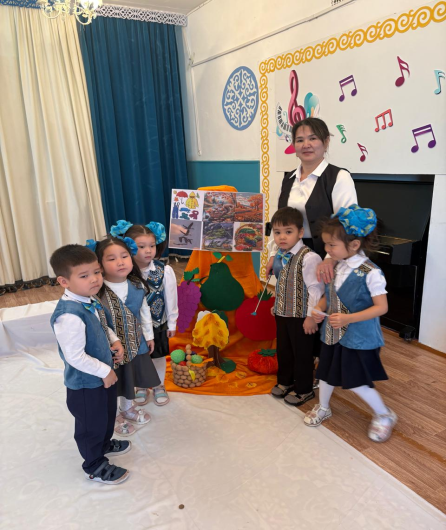 -Жарайсыңдар балалар, тамаша! Күз мезгілінде жаңбыр жиі жауады, ағаштардың жапырақтары сарғаяды, егін піседі. Егінді адамдар жинайды.Күзде барлық жеміс-жидектер пісіп, жерге түседі. Жан-жануарлар да қысқа азық жинайды.