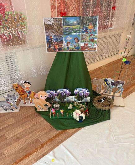 Шарты: Жыл мезгілдерін бейнеленген орманның макеті тұр.