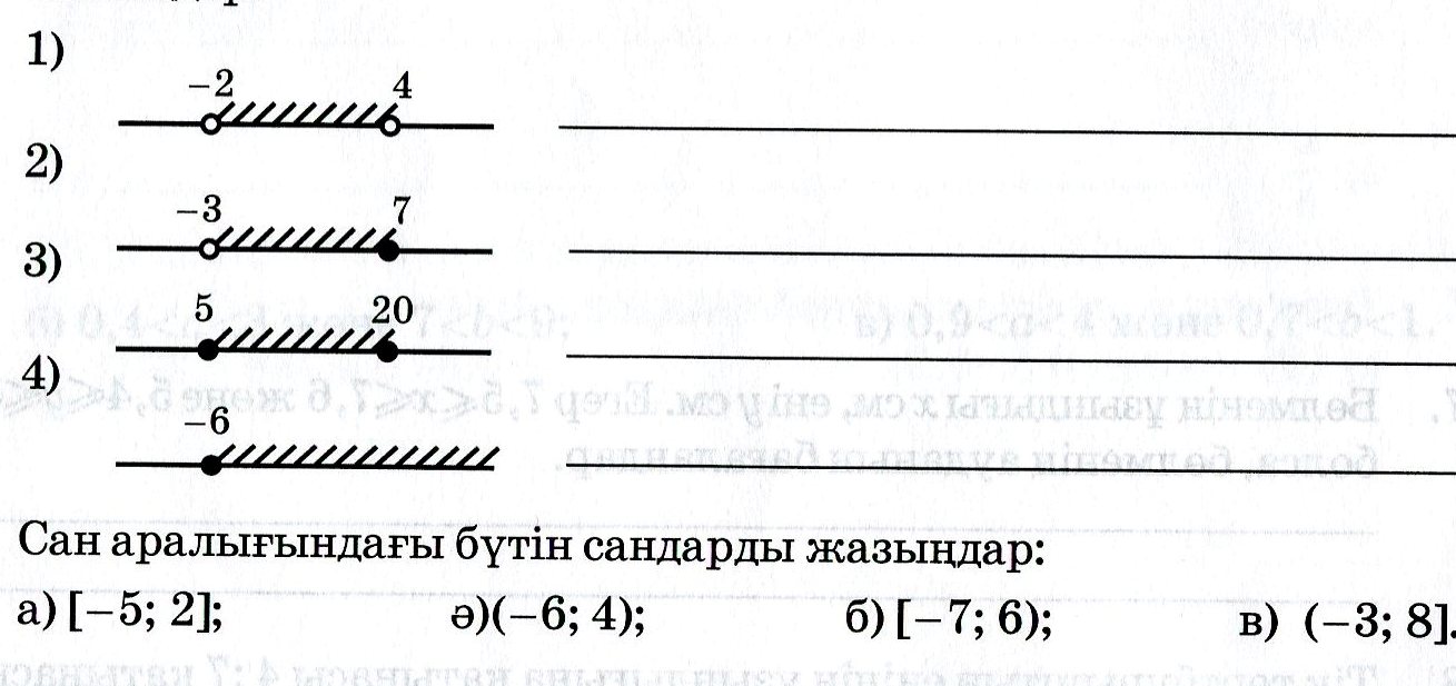 1.Суретте кескінделген сан аралықтарының белгіленуін пайдаланып жазыңдар: