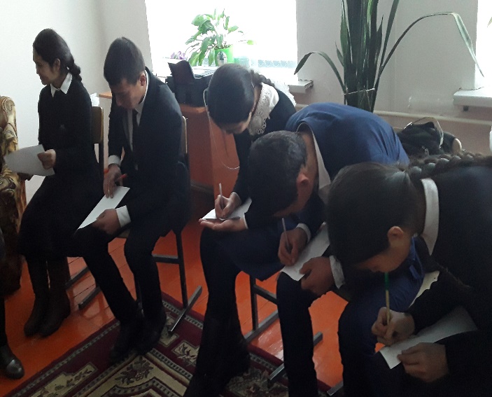 Мақсаты: Сыныптастары туралы ой-пікірлері мен қасиеттерін анықтау.Оқушыларға аттары жазылған парақтар үлестіріледі.Осы оқушының қасиеттері туралы жазу тапсырылады.