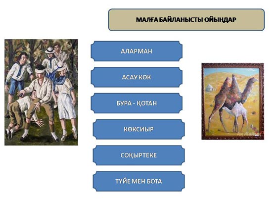 Көрнекілігі: асық, арқан, қоржын,жамбы