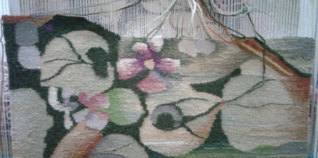 көркем еңбек сабағында оқушы қыздардың жасаған гобелен жұмысын