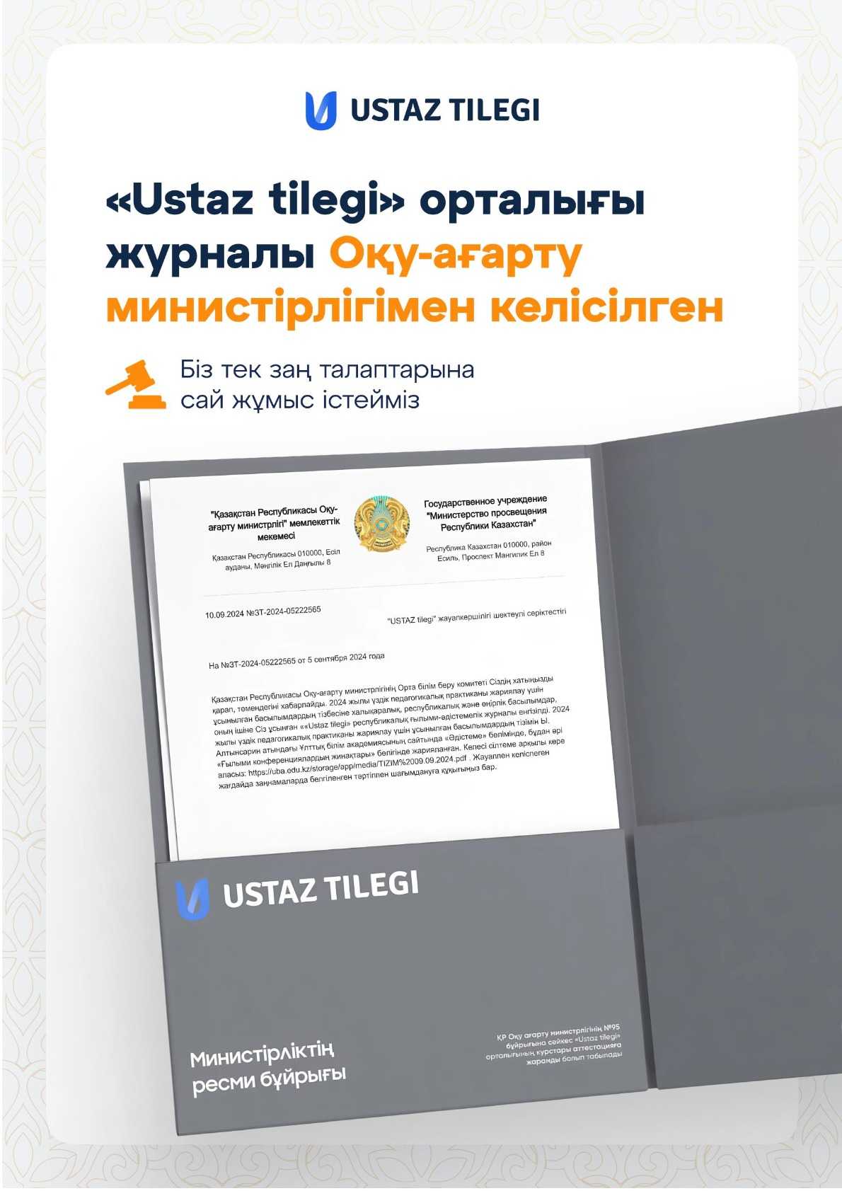 Бұл материалды қолданушы жариялаған. Ustaz Tilegi ақпаратты жеткізуші ғана болып табылады. Жарияланған материалдың мазмұны мен авторлық құқық толықтай автордың жауапкершілігінде. Егер материал авторлық құқықты бұзады немесе сайттан алынуы тиіс деп есептесеңіз,