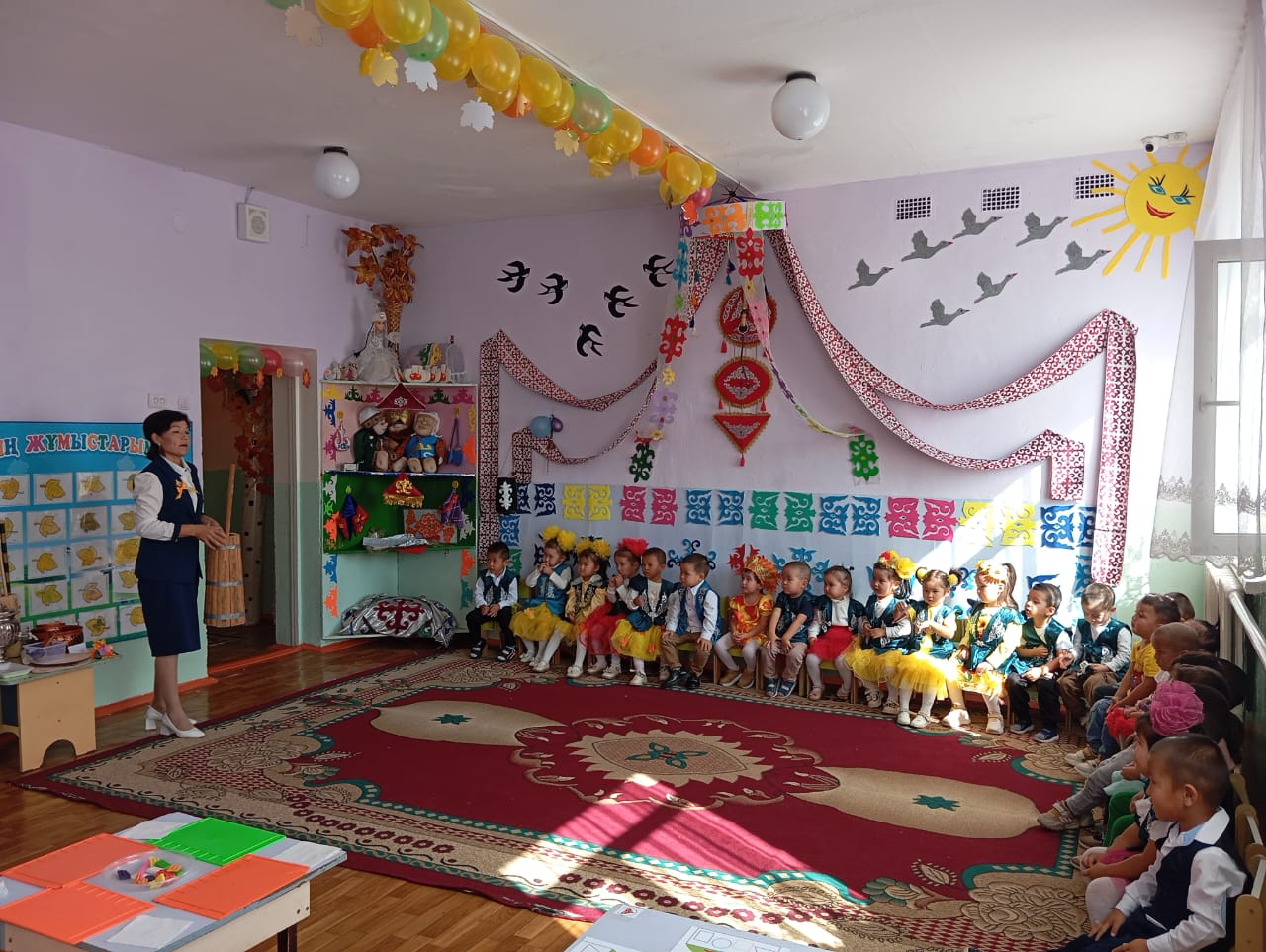 Балалар бүгінгі күн ерекше күн болғалы тұр,оның себебі өздеріңнің аналарың сендердің білімдеріңді,достарыңмен қарым-қатынастарыңмен танысу үшін келіп отыр.Ендеше,келген қонақтармен сәлемдесіп алайықшы.