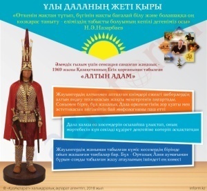 Елбасымыз Н.Ә. Назарбаев: Біздің жеріміз материалдық мәдениеттің көптеген дүниелерінің пайда болған орны, бастау бұлағы десек, асыра айтқандық емес. Қазіргі қоғам өмірінің ажырамас бөлшегіне айналған көптеген бұйымдар кезінде біздің өлкемізде ойлап табылған. Ұлы даланы мекен еткен ежелгі адамдар талай техникалық жаңалықтар ойлап тауып, бұрын-соңды қолданылмаған жаңа құралдар жасаған. Бұларды адамзат баласы жер жүзінің әр түкпірінде әлі күнге дейін пайдаланып келеді. Көне жылнамалар бүгінгі қазақтардың арғы бабалары ұлан-ғайыр Еуразия құрлығындағы саяси және экономикалық тарихтың беталысын талай рет түбегейлі өзгерткені туралы сыр шертеді.