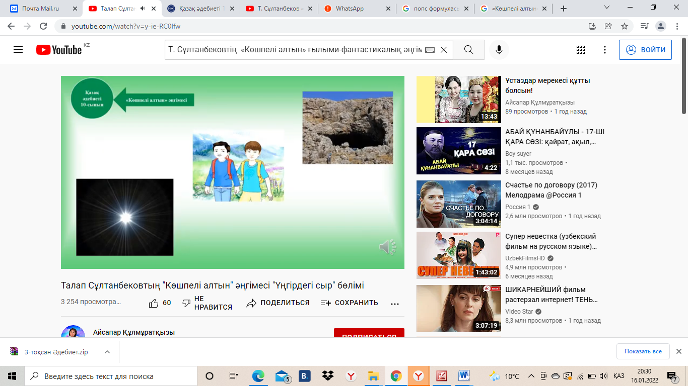 Сабақ тақырыбы: «Көшпелі алтын» ғылыми-фантастикалық әңгімесі «Үңгірдегі оқиға» бөлімі |