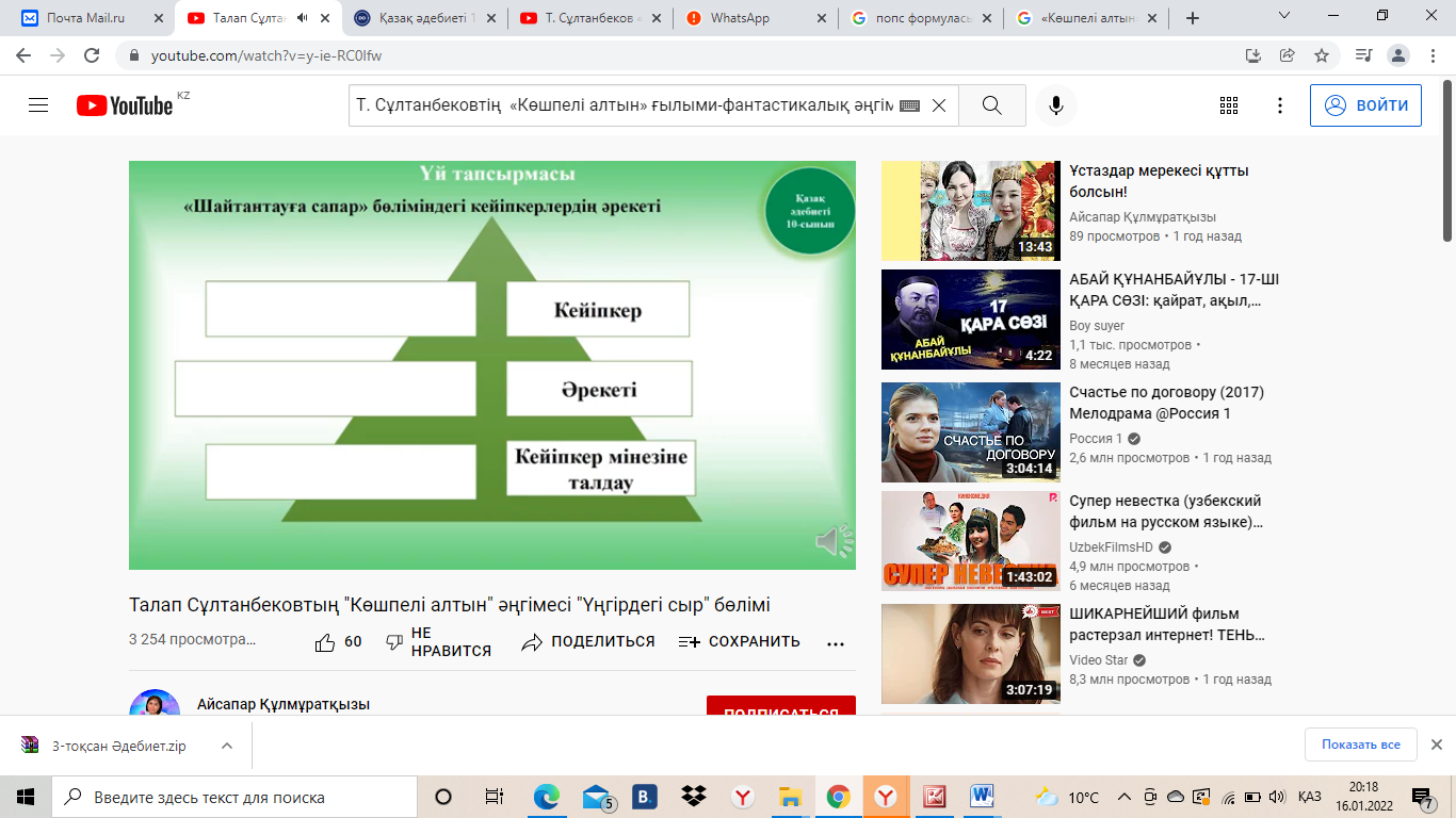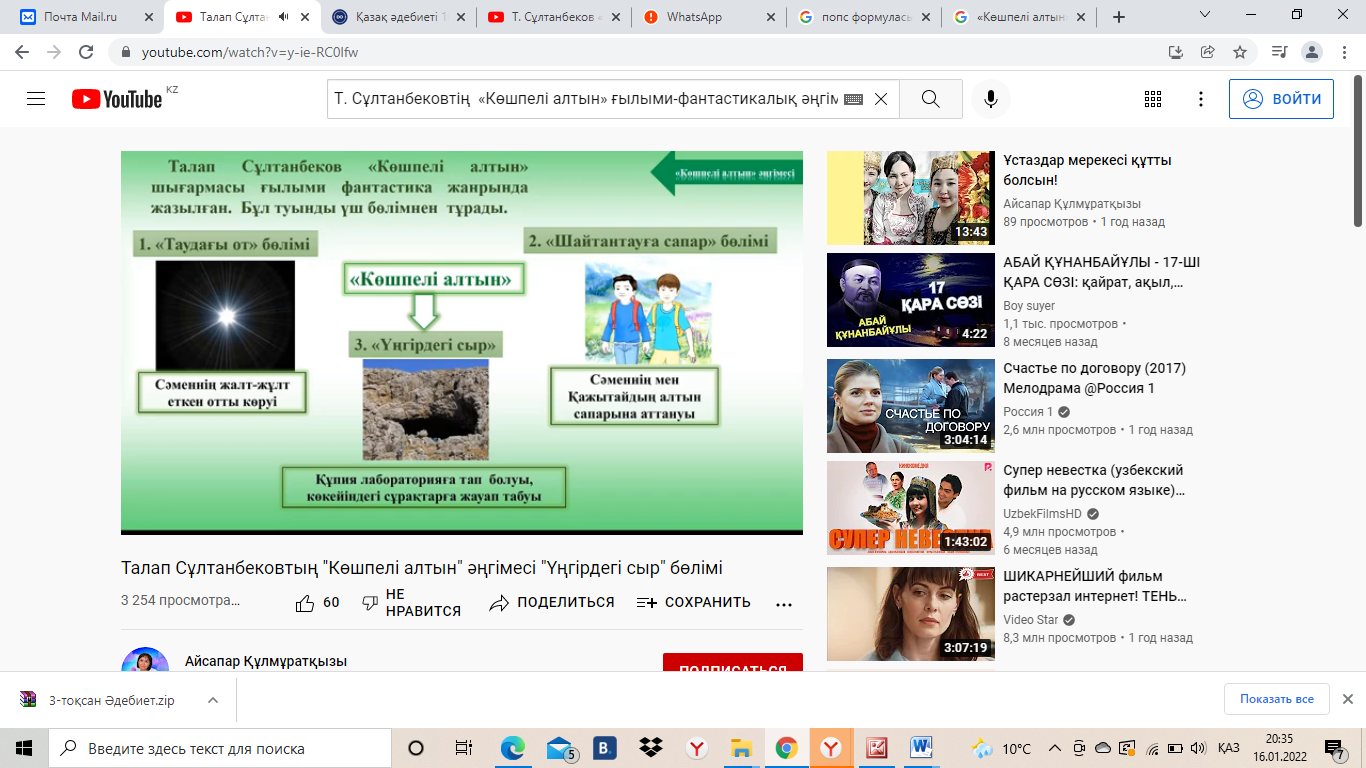 2-тапсырма. Жұптық жұмыс. «Қазіргі қазақ прозасындағы фантастика жанры» тақырыбында зерттеу жасаңыз.