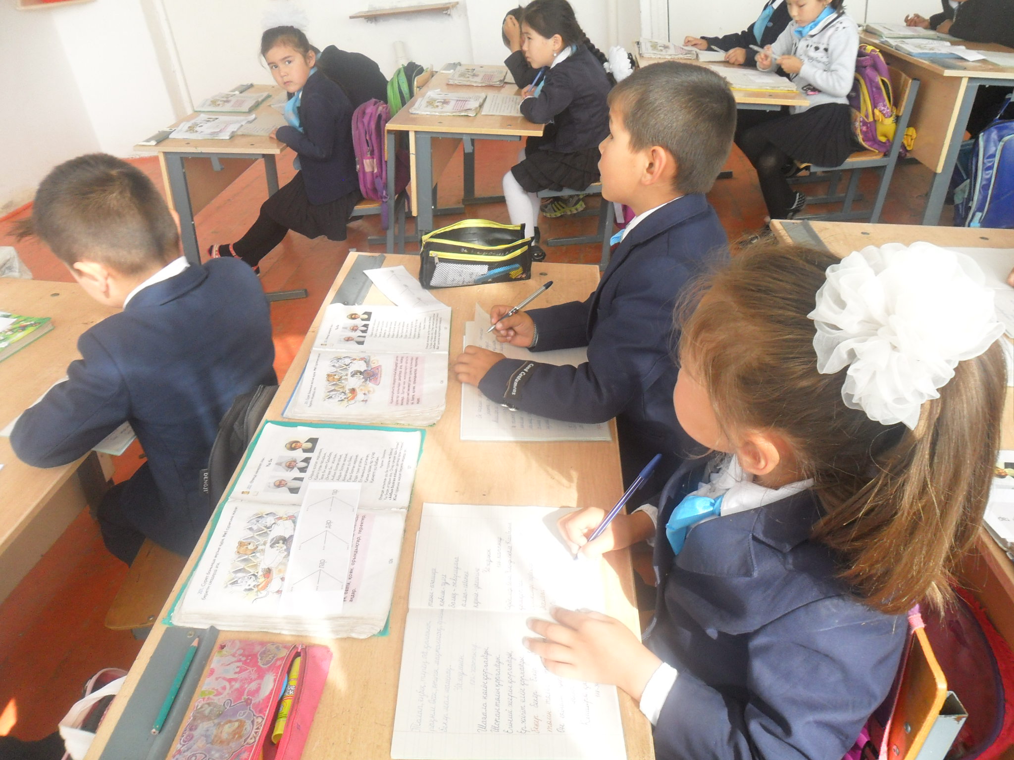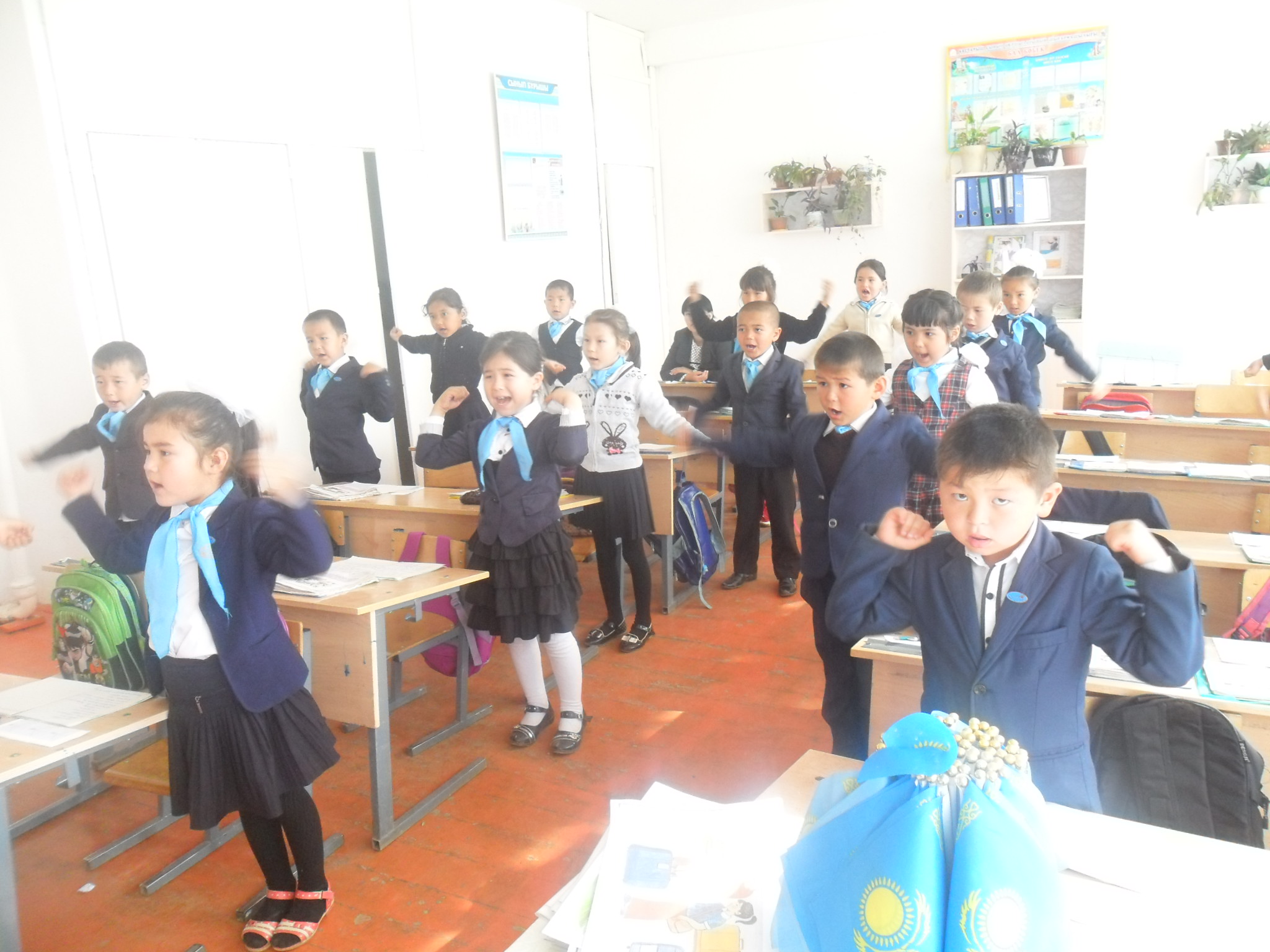 Оқушылар жаттығулар орындауда