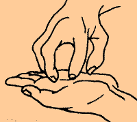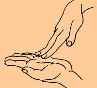 3.Оқушы екі алақаның беттестіріп қатты қысады да, саусақтарымен бір-біріне шапалақтап қағады. Бұлшық еттерінің сіңірлеріне қөбірек салмақ салу үшін әр екі саусақты жұптастырып жұқа резина қапшық кигізіп қояды.