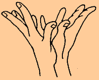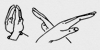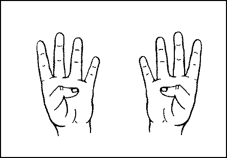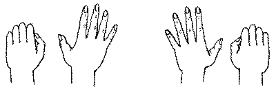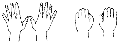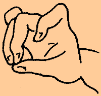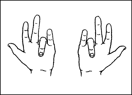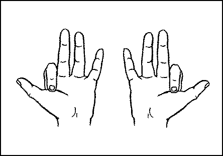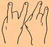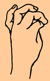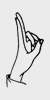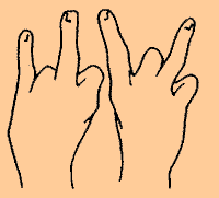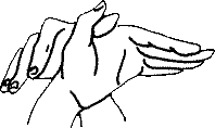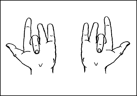 2-ші саусақ – «Балаң үйрек» пен 5-ші саусақ – «Кішкентай бөбекті» жоғары қарату, қалған саусақтарын суретте көрсетілгендей бүгу.