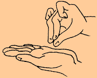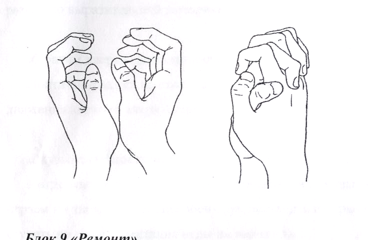 Суретте көрсетілгендей оң алақан ашылған сол алақанды «сыпырады». Одан кейін оң қолды төмен түсіріп қарқынды түрде сілкілейді. Бұл жаттығу да кезекпен оң және сол қолдарды ауыстырылып жасалынады.