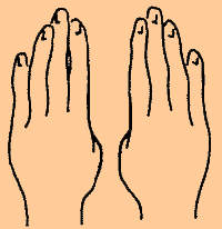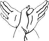 Оқушының қолдары жоғары бағытталған. Алақандары білезік тұсында біріккен (гүл тостағаншасын бейнелеу). Саусақтары ашылған. Одан кейін саусақтарды «ашып жабу» керек.