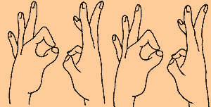 Суретте көрсетілгендей «Басбармақ» пен шынашықтар («Кішкентай бөбек») бiр-бiрiмен айқастырылып сақиналар құрайды.