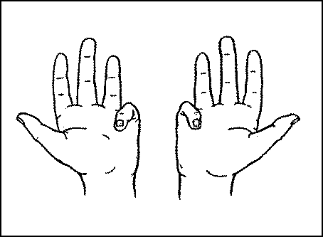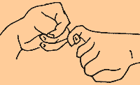 Жұдырықтар жұмылған, шынашықтары («Кішкентай бөбек») бiр-бiрiмен iлiгiскен.