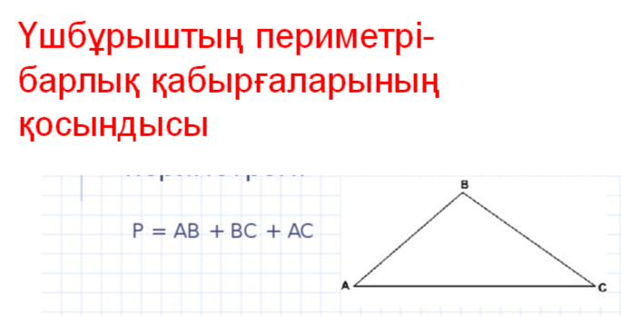 Үшбұрыштың төбелері: А,В,С Үшбұрыштың қабырғалары:АВ,ВС, АС.